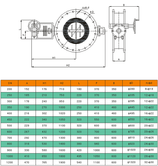 6、公称通径范围:DN200~1200;